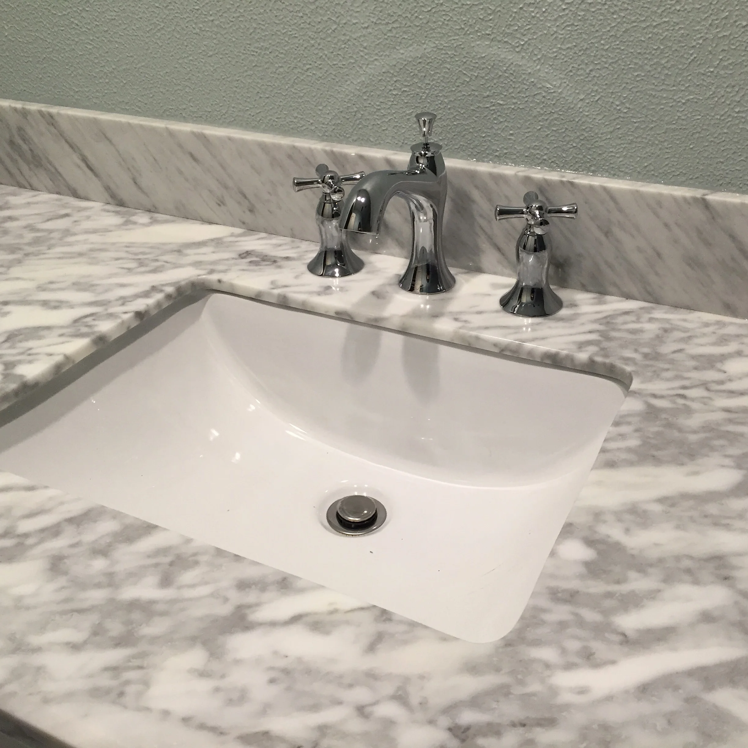 So perfect. I love the vanity so much. It's from Lowe's and was perfect. Soft-close drawers, Carrara Marble. It also weighs more than I do. Let's hope it still looks this beautiful in 20 years.