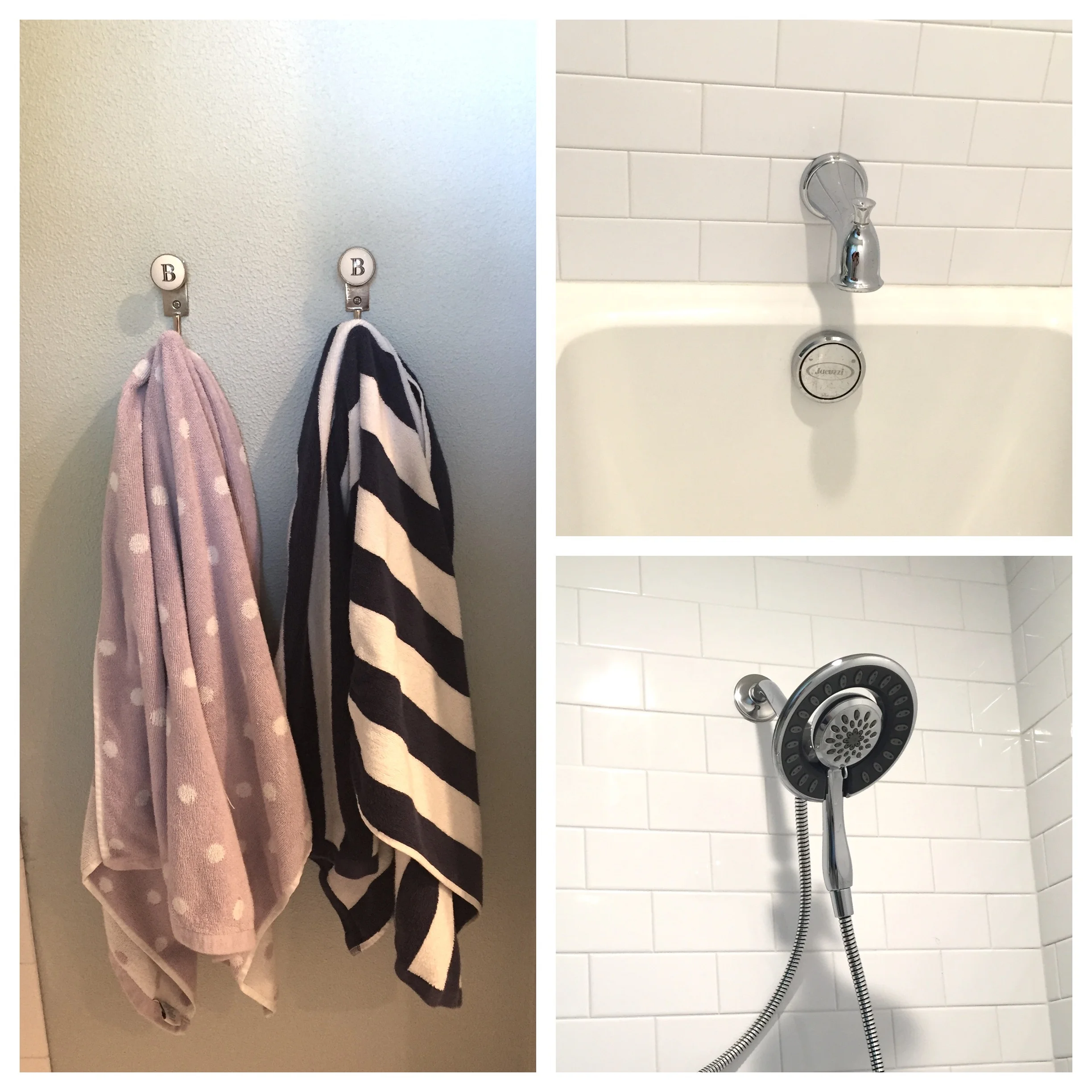 We added bath fixtures and mounted towels.